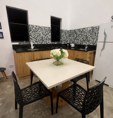 Estúdios aconchegantes perto da praia com ambientes que relaxam e animam, local perfeito pra quem quer estar perto da natureza sem abrir mão da conveniência.